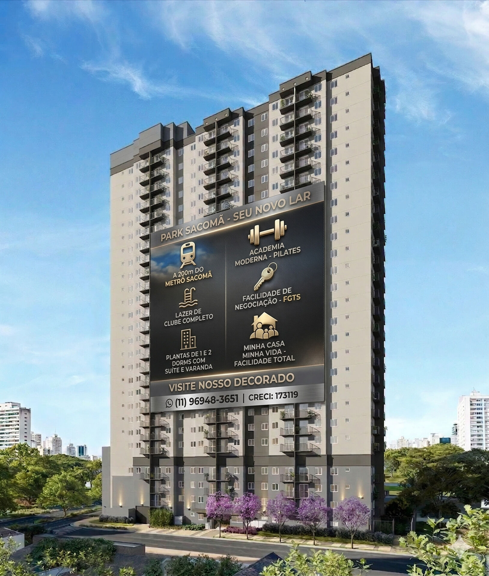 Viva com a conveniência de um clube e a mobilidade que São Paulo exige. O Park Sacomã une a praticidade de estar a apenas 3 minutos a pé da Estação Sacomã do Metrô com o lazer completo de um condomínio de alto padrão, dentro dos benefícios do programa Minha Casa Minha Vida.