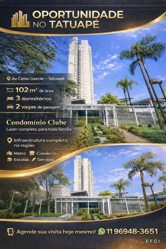 Excelente oportunidade de moradia ou investimento em uma das regiões mais valorizadas da Zona Leste. Este apartamento de 102 metros quadrados oferece uma planta inteligente e funcional, ideal para quem busca conforto e praticidade.