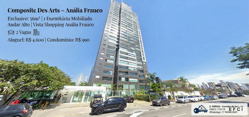 Descrição: Viva no coração do Anália Franco, em um dos condomínios mais modernos e completos da região. Este apartamento de 56m² une praticidade, conforto e uma vista privilegiada para o Shopping Anália Franco.