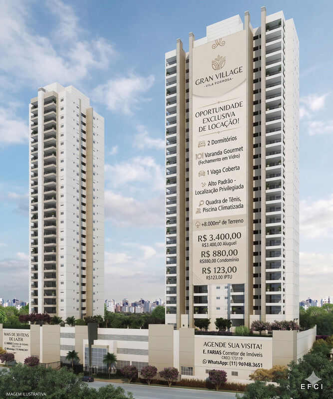 Descrição: Descubra o prazer de morar em um verdadeiro resort urbano. Este apartamento de alto padrão no Gran Village Vila Formosa une modernidade e praticidade em cada detalhe. Com 2 dormitórios bem distribuídos, o imóvel se destaca pelo acabamento refinado e tecnologia, contando com persianas automatizadas e uma incrível varanda gourmet já fechada em vidro — o cenário perfeito para seus momentos de lazer.