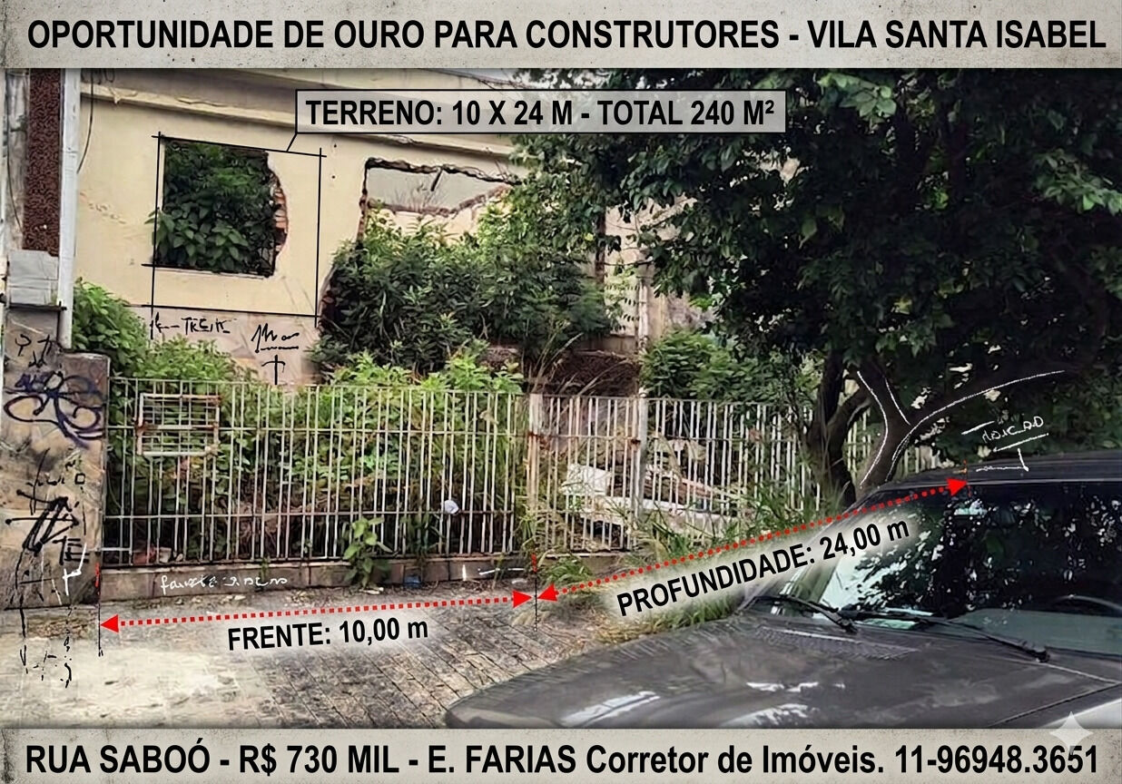 Oportunidade na Vila Santa Isabel – Terreno 10x24m